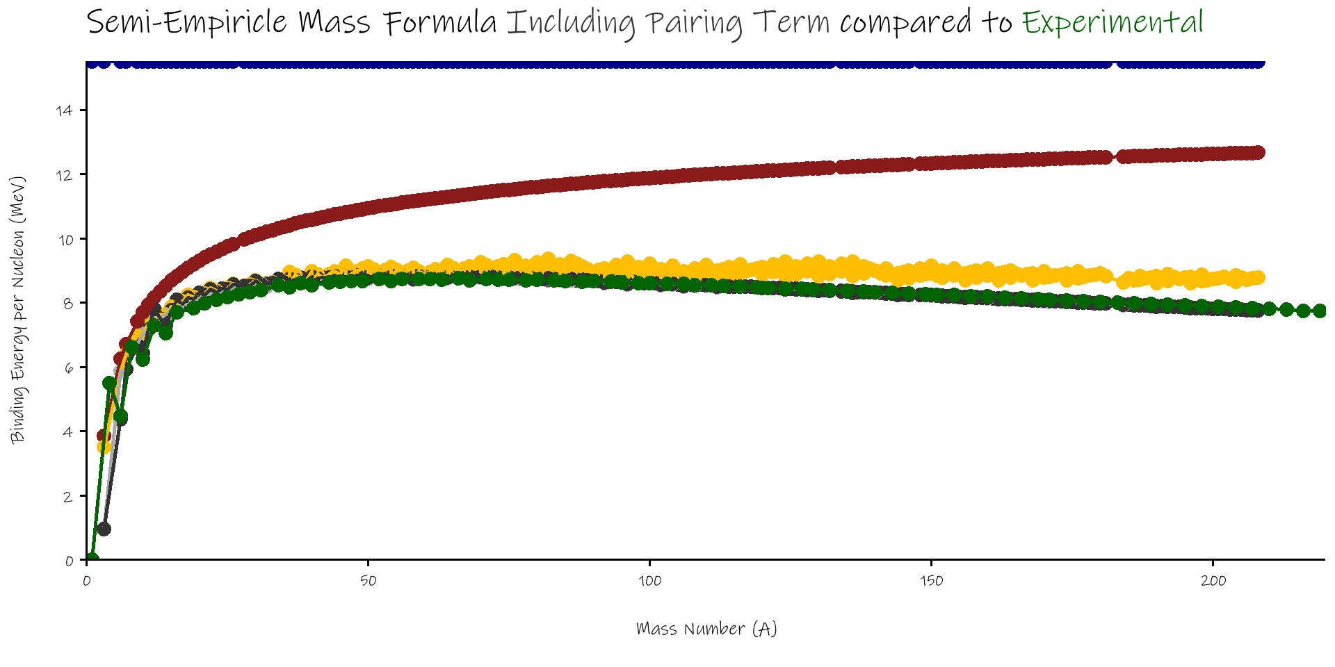 a positive pairing term favourising even numbers of protons / neutrons. Let’s call this term just \(\delta\)