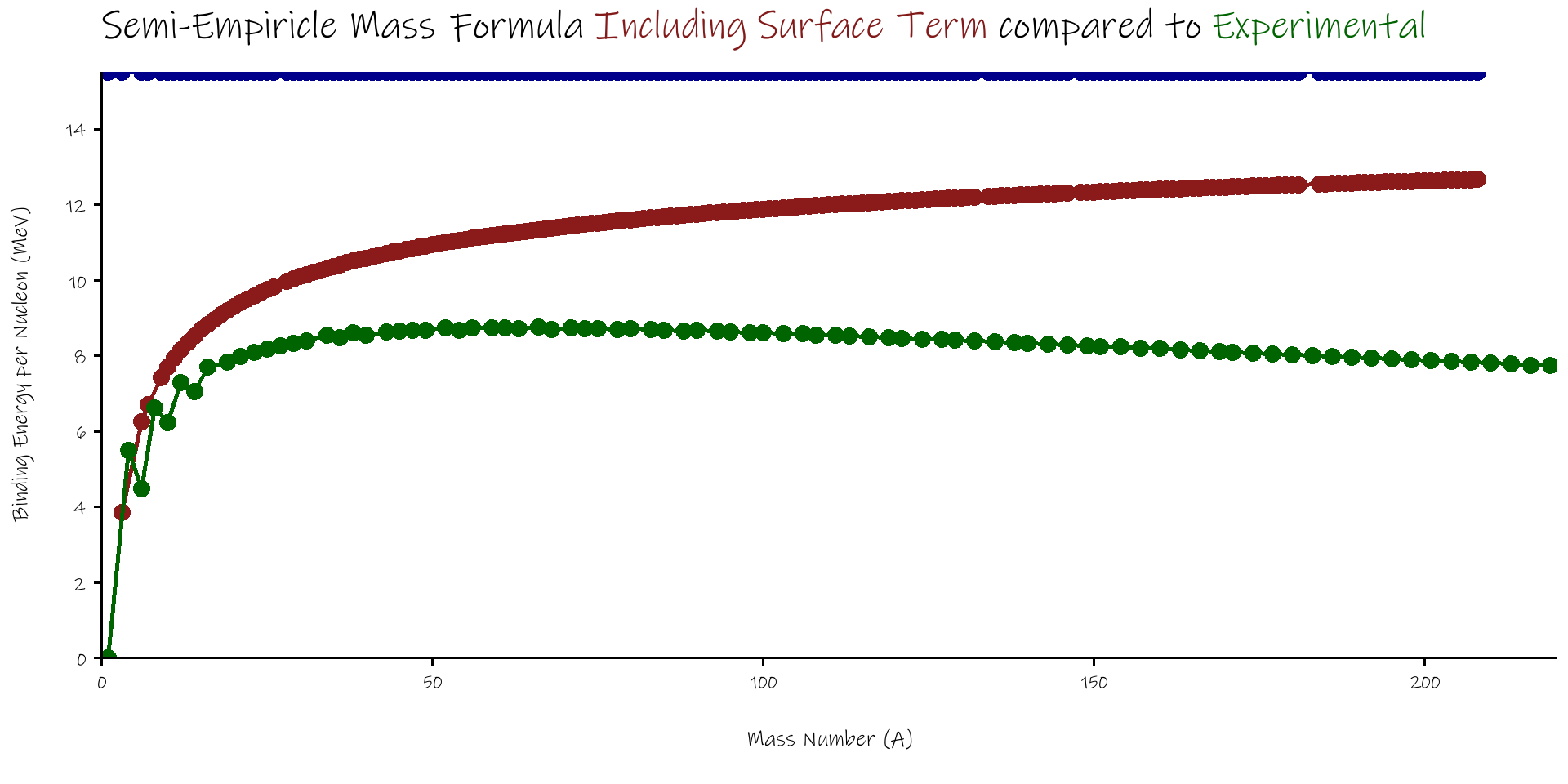 a negative surface term given by \(-a_sA^{-\frac{2}{3}}\)