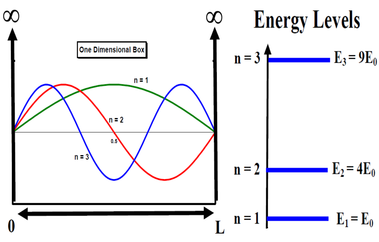 Remember \(E_n = \frac{\hbar^2 \pi^2 n^2}{2mL^2}\) for infinite square well \(\Delta E = E_{LUO} – E_{HFO} = \frac{\hbar^2 \pi^2n_{LUO}^2}{2mL^2} - \frac{\hbar^2 \pi^2n_{HFO}^2}{2mL^2}\)
